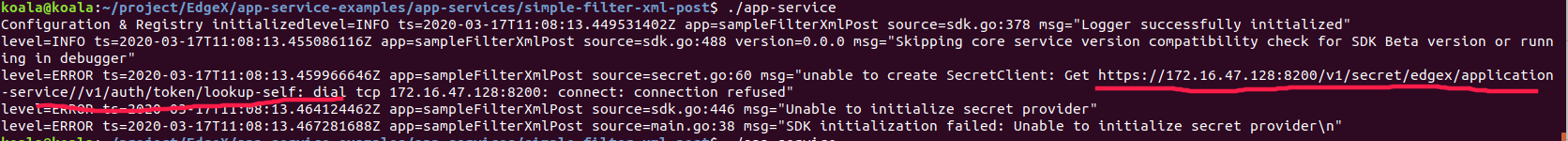 注意 app-functions-sdk-go v1.0.1-dev.9 从9往后的版本, 应用服务添加了安全校验,