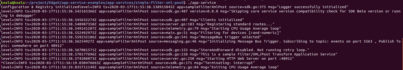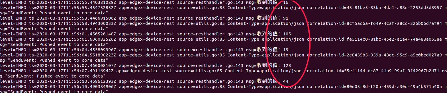 通过EdgeX给appService,appservice我没打印日志,截图是停掉进程之后接的, 所以忽略最后两行日志