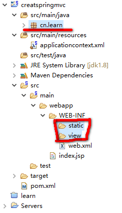 要在src/main/java 下创建包为cn.learn, 为了方便就这么写了, 大神别喷我