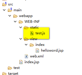 在浏览器中访问http://localhost:8080/createspringmvc/static/test.js